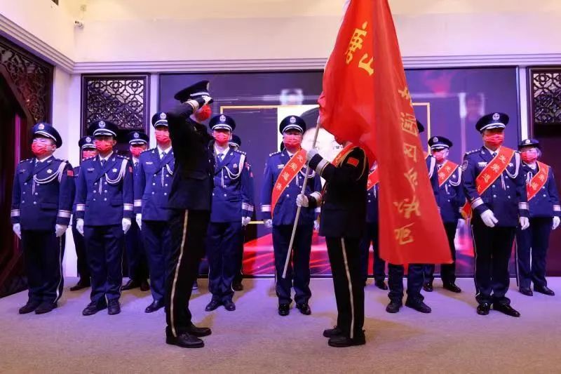 薪火相传,代代相续。仪式上退休民警将象征光荣和使命的旗帜郑重地交到新入职民警手中,并送上殷殷嘱托。新老民警共同重温入警誓词。